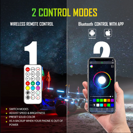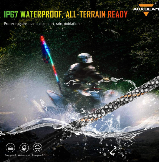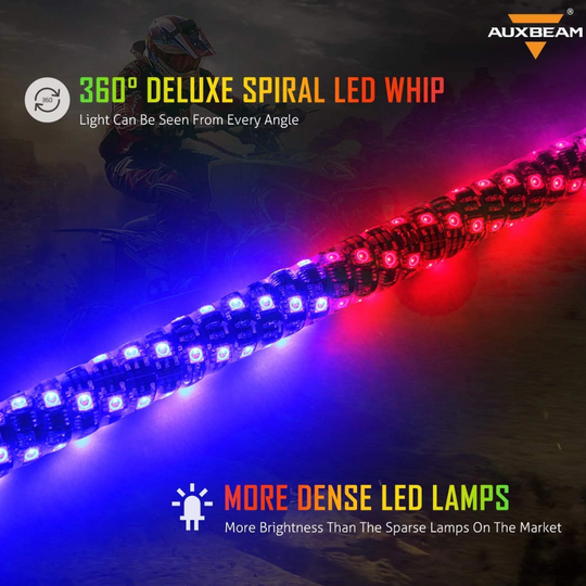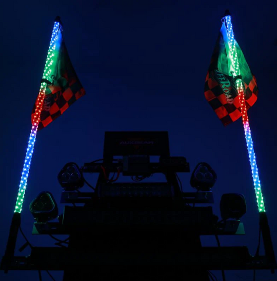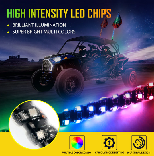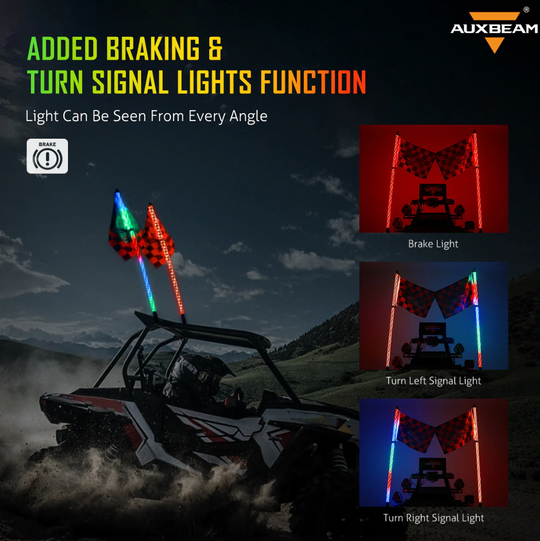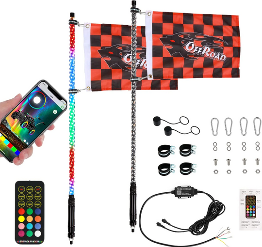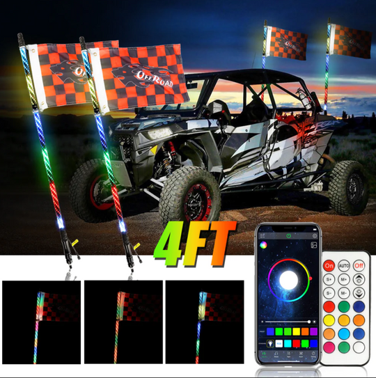 (2PCS/SET) 4FT LED RGB Whip Lights with Turn Signal & Brake Light, Bluetooth APP/ Remote Control