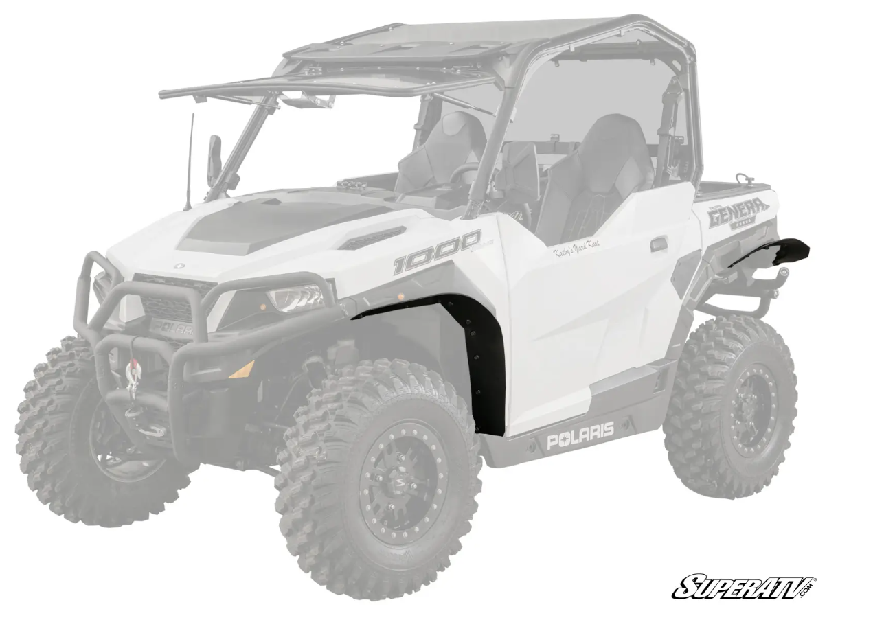 If you ride like we do, you’re constantly flinging mud and dirt into your cab (and sometimes onto your face). If you want to enjoy the ride without worrying about the cleanup that follows, get SuperATV’s Low Profile Fender Flares for your Polaris General. They extend your stock fender flares by 3”, providing a much-needed shield against mud, water, and other trail debris. They look great and make mudding and creek riding easier than ever.