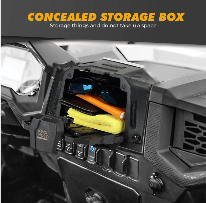 No need to drill and modify, plug and play. According to the instructions, take out the storage and the top of the original dashboard, replace the kemimoto storage rack, and fix it with bolts. It only takes 1 minute to complete the installation.