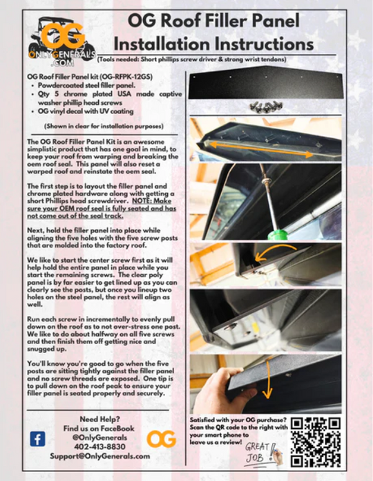 OG Roof Filler Panel? Tell me more! A loud screeching whistle coming into the cab can be the most annoying experience you'll have while driving your Polaris General at speed. Combine that with wind, dust, and...Regular price $69.99Regular price $69.99 -