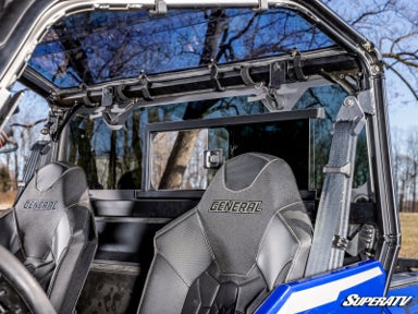 If you have a front windshield installed on your Polaris General XP 1000, a rear windshield is essential. It protects you from dust and debris while eliminating the annoying suction that happens when you only have a front installed. Plus, you’ll have complete control over ventilation thanks to the sliding window.