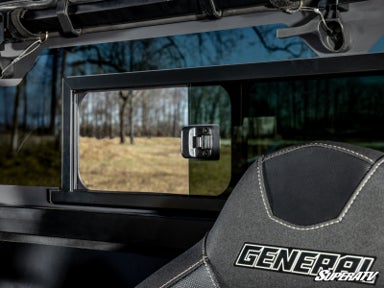 If you want full control over the airflow in your cab, a sliding rear window is the way to go. That’s why we made the rear glass on this Polaris General XP 1000 windshield with the biggest sliding panel we could fit. It’s got strong, pickup-style latches and sliders—way more solid than what you’d usually see on a UTV. It’s all about making your ride more comfortable and functional.