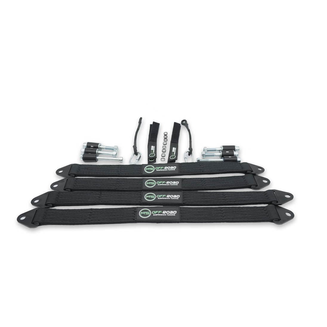 Removes Clunking: During the tuning process of shocks, the rebound is sped up, which causes the undesired "clunking" noises when the suspension tops out. MTS Limit straps prevent these noises from developing by limiting the travel and preventing the suspension from hitting full droop.
