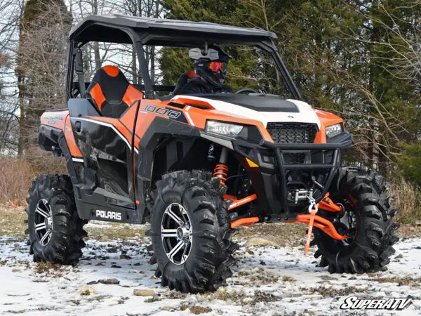Our engineers designed these Polaris General front A-arms with a bend that gives you 2” of additional ground clearance. With 1.5” forward offset, you can stretch out your wheelbase. It makes a huge difference by giving you room for larger tires and more stability. Your machine can take on anything when riding with our high-clearance A-arms.