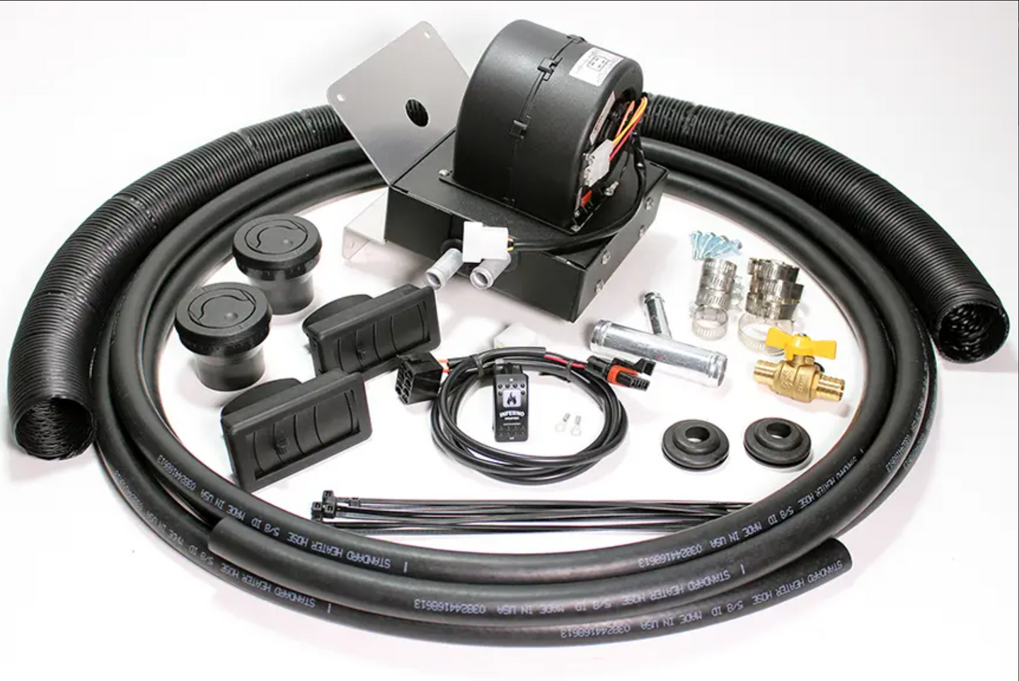 - Includes all necessary components: heater hose, hose splicers, hose clamps, mounting brackets, defrost and floor louvers, ductwork & wiring.